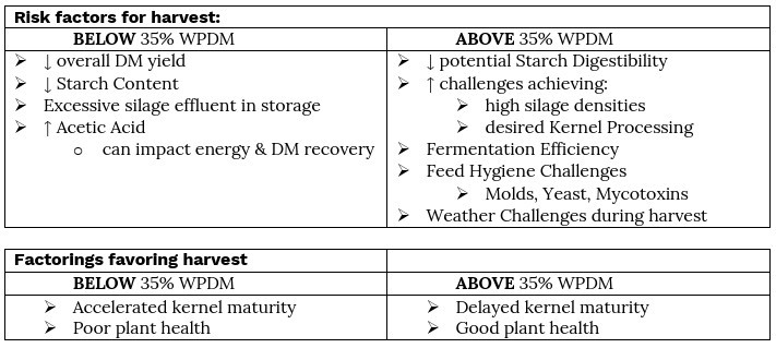 TABLE 1: Considerations for harvest above or below target corn maturity